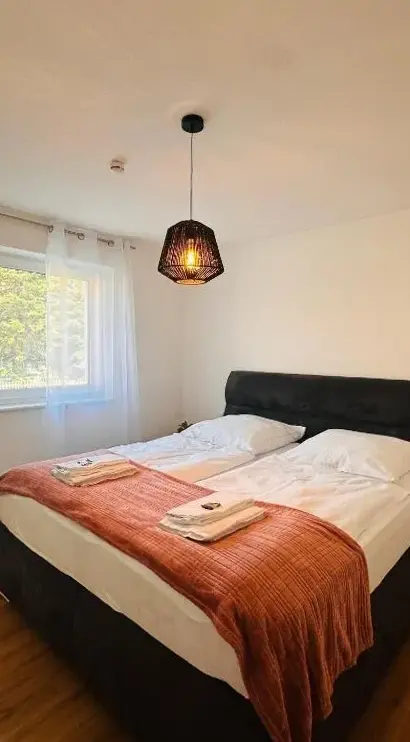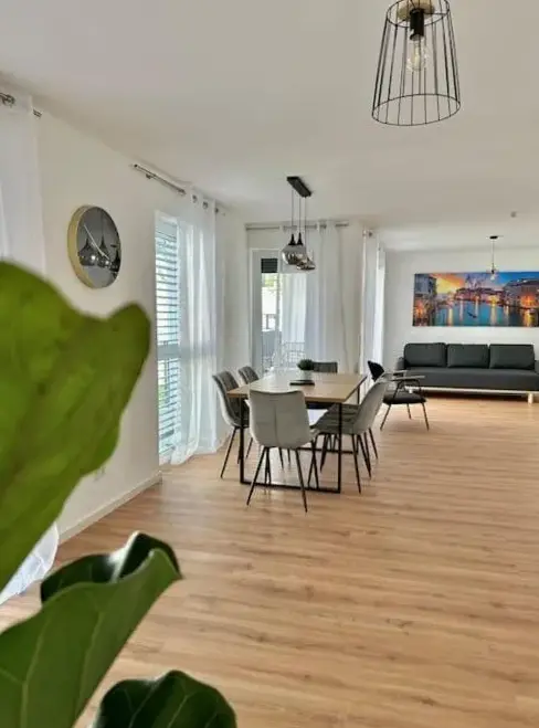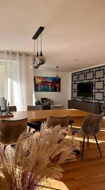 La AMAO Pearl ofrece una suite adaptada para sillas de ruedas con 94 metros cuadrados, ideal para grupos hasta diez personas distribuidas en dos viviendas independientes. Destaca por su diseño moderno y detalles cuidados que combinan comodidad y funcionalidad, como la presencia de un ascensor y plaza de garaje subterránea incluida. Los comentarios resaltan aspectos como los colchones cómodos, el sistema de calefacción por suelo radiante y una distribución espaciosa que incluye un balcón privado donde relajarse tras un día intenso. La ubicación estratégica cerca del centro exposiciones facilita accesibilidad tanto para eventos profesionales como estancias prolongadas, ya sea por trabajo o turismo familiar. Aunque algunos usuarios mencionan pequeños ajustes necesarios en mobiliario o equipamiento básico, la mayoría valora positivamente la limpieza impecable y la atención al detalle arquitectónico, además de la cercanía a servicios esenciales como restaurantes tradicionales (Gasthaus Helmer, a solo 200 metros) o bares especializados (Zäpfle Bar). Para quienes buscan explorar naturaleza urbana o paisajes verdes, puntos como el Fessebacher Wald (3,9 km) o las instalaciones deportivas recreativas (Freizeitanlage Gengenbach) están a menos de ocho kilómetros. El alojamiento cumple con estándares inclusivos gracias a sus adaptaciones específicas para movilidad reducida y cuenta con zonas comunes equipadas según normativa local.
